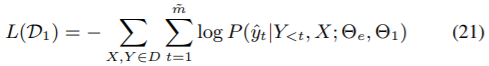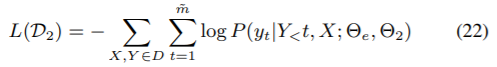 模型训练:模型以端到端的方式进行优化。 我们使用D表示训练数据集,并使用Θe,Θ1和Θ2分别表示编码器、第一步解码器和第二步解码器的参数。第一步解码的训练是为了最大程度地减少以下损失: