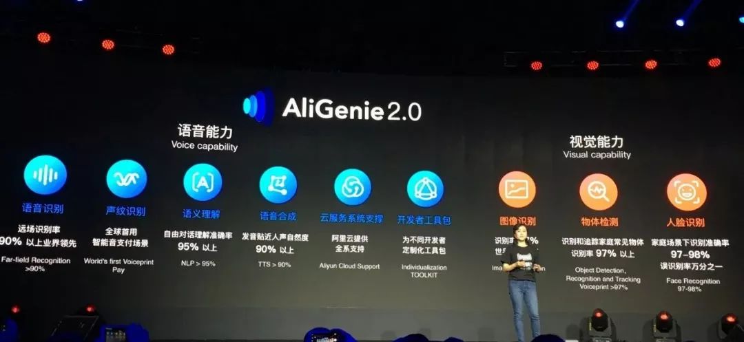 3月22日,阿里巴巴人工智能实验室总经理浅雪(陈丽娟)发布AliGenie2.0系统,它最大的改进是在1.0的基础上增加了视觉能力,并引入多模态交互能力,只需要另外增加一些辅助设备,就能让天猫精灵具备视觉能力。同时,浅雪还宣布,天猫精灵销量已经超过200万台。