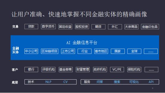 把技术手段和应用场景结合起来,从大量的数据源中提取有意义的信息,我们就可以提供大量的知识体系和信息为金融赋能。