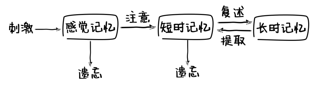 目前普遍认为人类记忆有三级加工模型,分别为感觉记忆、短时记忆和长时记忆。