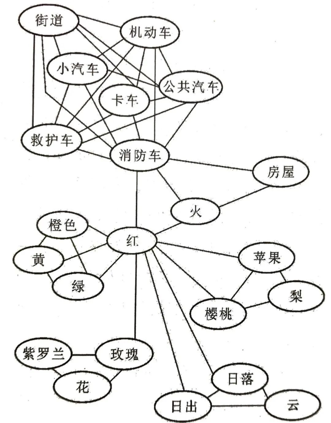 一个比较有影响力的模型叫做“野火模型”(注:在心理学中常叫做“激活扩散模型”),从一点把火点起来,它就会往四周燃烧;一个线索的出现就会把相邻的东西给激活。