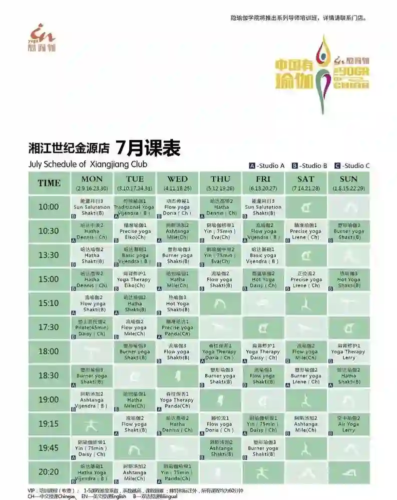 “隐瑜伽”公开课课表。