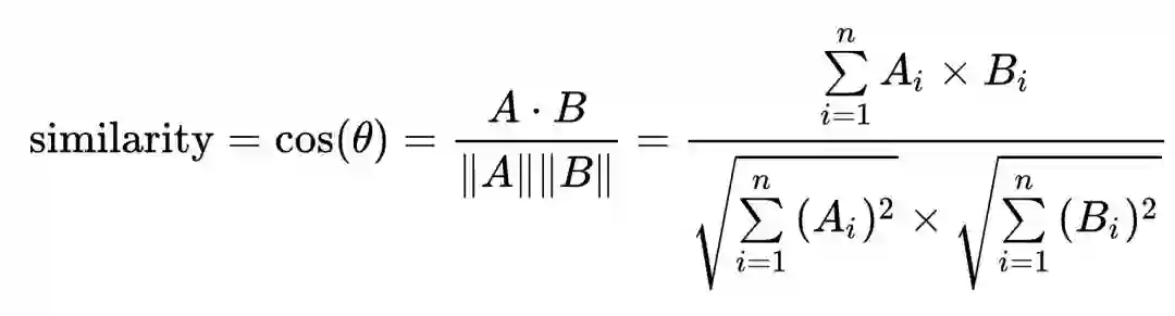 给定两个属性向量, A 和B,其余弦相似性θ由点积和向量长度给出,如下所示: