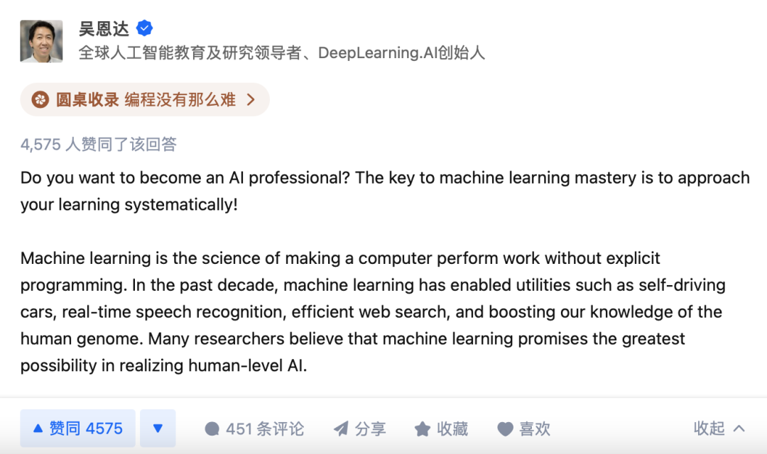 虽然卖萌酱已经不需要系统学习机器学习了,但无意间发现最高赞的id竟然叫“吴恩达”??