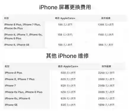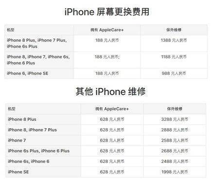 对国内用户而言,购买了AppleCare+服务计划的iPhone 8用户,前两次的意外损坏维修,屏幕的维修费用是188元,玻璃后壳等其他损坏的维修收费则是628元,在达到2次后,iPhone 8屏幕损坏的维修费用就提高到了1188元,iPhone 8 Plus则是1388元,其他损坏的维修,iPhone 8是需要支付2888元,iPhone 8 Plus是需要支付3288元。