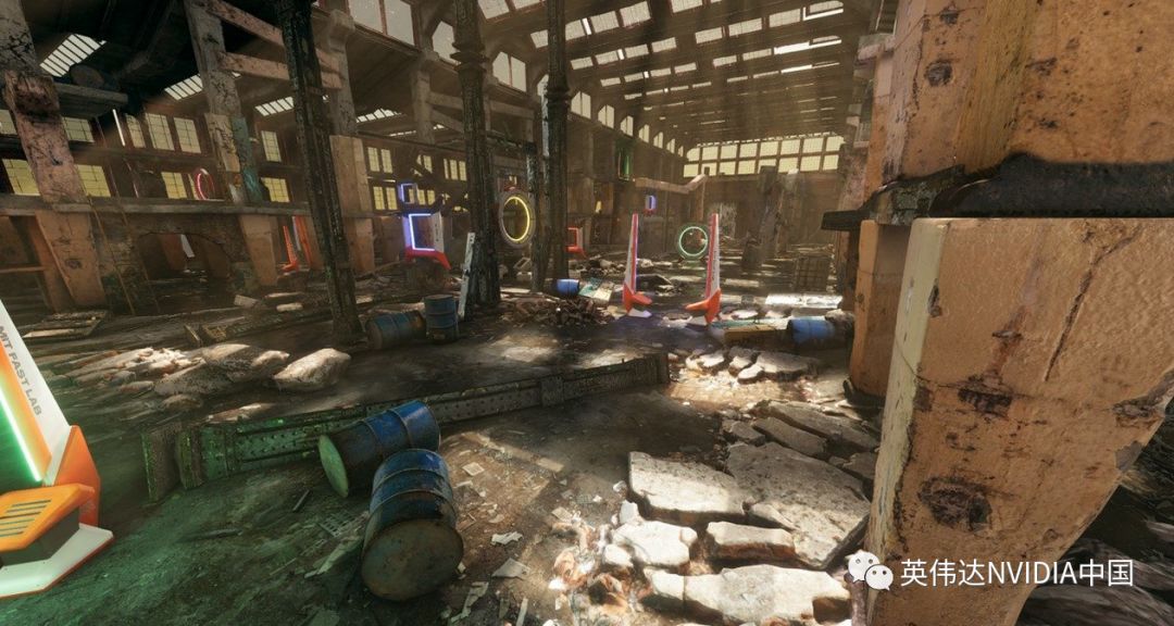 无人机驾驶员正在用Flight Goggles测试他们的飞行技能,这是一种由NVIDIA RTX技术提供动力的仿真设备,可以在逼真的环境中提供一个虚拟的赛场。