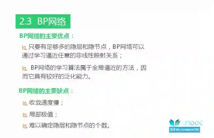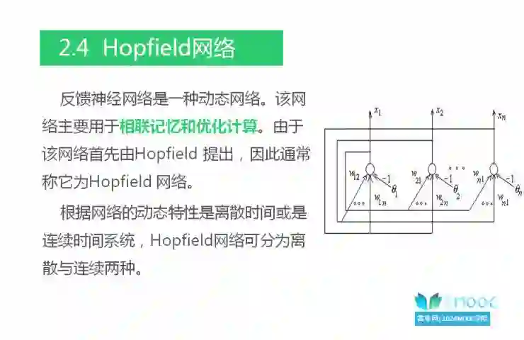 第二部分,教授讲述了人工神经元的基本模型,以及 BP 网络、Hopfield 网络这两种关键模型。在讲解后面两种景点神经网络模型时,邓教授对基于 BP 和 Hopfield 网络的每一个优化和细分结构都进行了公式推理级的详细讲解,让学员不但清楚了这些结构的优势,并且理解了为什么具有这些优势。相关精彩 PPT 如下: