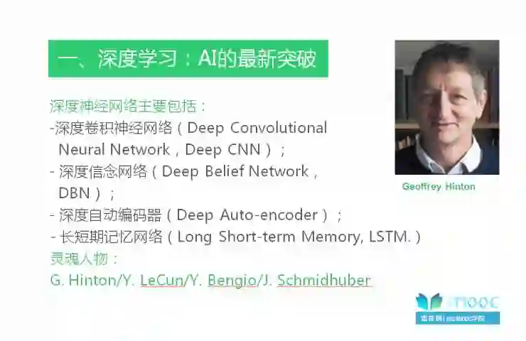 这一部分邓教授综述了 AI 的定义及发展历程、关键技术成果、高性能计算平台以及典型应用场景和前沿探索等内容。课程中,邓教授在阐述 AI 发展历史的同时,会不时插入一些经典的用例和关键技术特征,而且,在讲述技术特征时,又会常常联系起此前出现过的其他技术特征,对比其区别和联系。总体上,让学员在 AI 发展历程和关键技术特点之间建立了一个相互联系的牢固架构,非常便于理解和记忆。相关精彩 PPT 如下:
