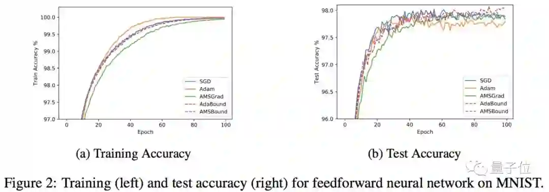 在模型训练开始时,AdaBound的行为类似于Adam,速度很快,并在结束时转换为SGD,保证模型收敛到损失更低的最优解上。