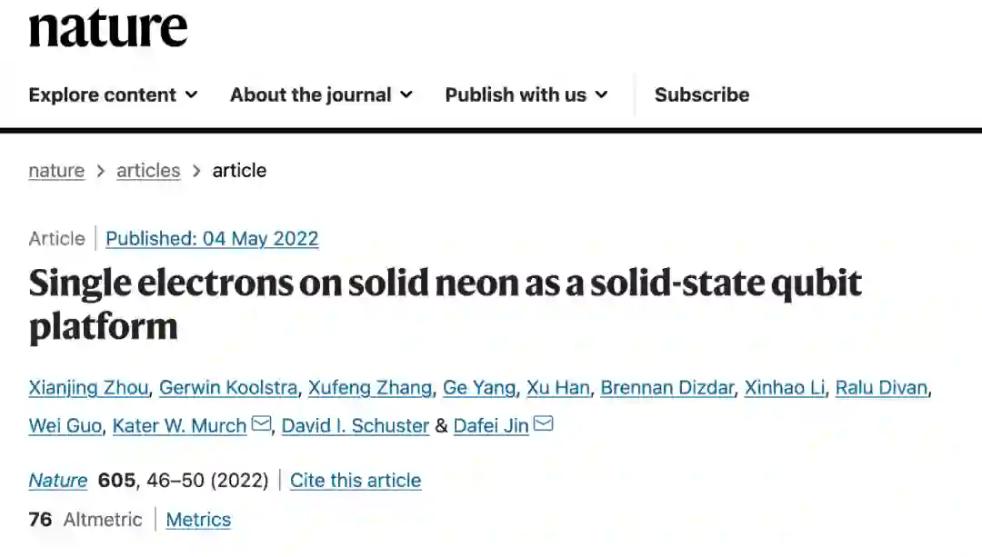 通过将氖冻结成固体,并将加热的灯丝产生的电子喷射到氖冰的表面,研究者捕获了单个电子以创建更加稳定、不受干扰的量子比特,可以媲美科学家们研究了 20 年的基于电荷的量子比特。该研究登上了新一期《自然》杂志。