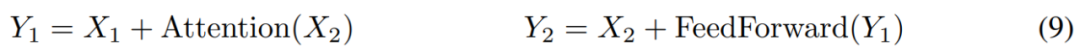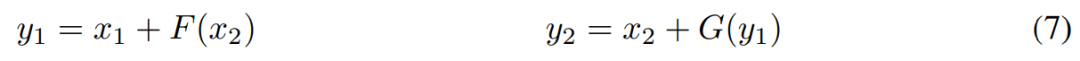 函数,其形式为 y = x + F (x),可逆层作用于成对的输入/输出: