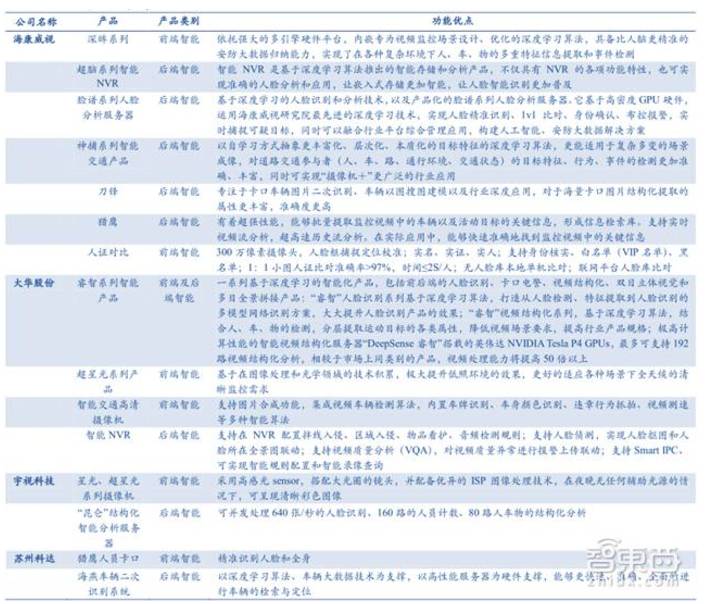 具体到供应端来看,目前主流安防厂商的人工智能产品包括前端(摄像头)和后端(服务器)两类。