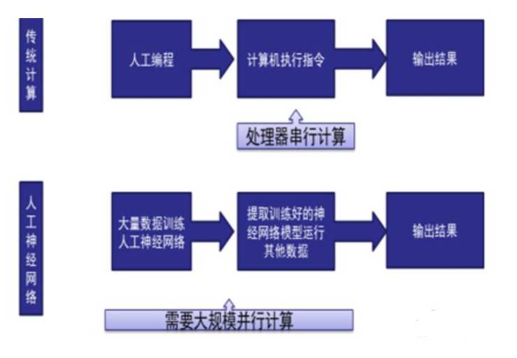 深度学习与传统计算模式不同,最大的区别是不以执行指令为目的,但需要大量并行计算资源,因此需要专门的计算芯片来加速计算。实际上无论是前端智能摄像头还是后端结构化服务器,其额外增加的硬件资源核心目的实质上都是为了增加计算能力。