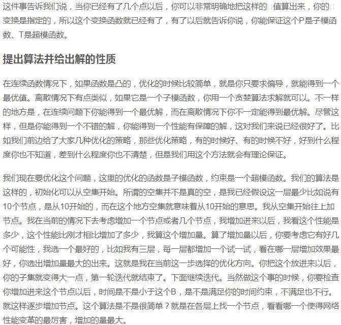 子模函数和超模函数是后边的网络结构优化要用到的知识。介绍的时候我先说明,这里面大概有10页左右的PPT是从这个网站上拿过来的(网址:http://www.select.cs.cmu.edu/tutorials/icml08submodularity.html)。在2008年国际机器学习大会有一个特别好的tutorial,就是关于子模函数和超模函数。那个报告给我印象深刻,所以我就把其中的几页拿过来在上面做了一些改动。不管怎么说,谢谢这两个作者。课后大家如果对这个有兴趣,可以去看看他们很完整的PPT。他们对子模函数和超模函数介绍非常详细,很感谢他们。