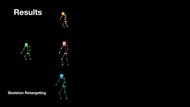 我们不仅可以把一个人的动作迁移到另外一位骨架类似的人身上,也可以把小孩的动作迁移到大人身上,甚至可以把动物的动作迁移到人的身上。这就需要具备一定的三维骨架重定向的能力。