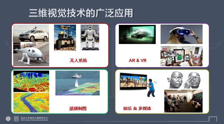 三维视觉技术的发展得益于视觉传感器的快速发展,已经在推动很多应用,比较有代表性的包括无人车、机器人,以及娱乐、影视等其它领域的应用。