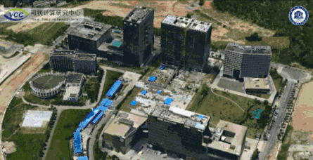 下面简要介绍一下我们在这方面的一些探索性工作。2009年,当时大疆无人机还做定制化产品,我们请大疆做了一台定制化无人机,目的用它来做倾斜角航拍,利用无人机从空中得到航拍影像,经过三维重建计算以后得到三维影像数据(注意,还不是完整的三维模型),有了三维描述就可以从任意视角自由地漫游场景。可以看到,尽管用的只是二维传感器,依然可以通过视觉计算得到三维数据的描述。
