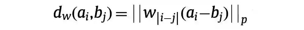 即为与两个点在 X 轴上的距离(phase difference)相关的 weight。WDTW 通过计算两点欧氏距离时添加一个 weight 的方法,为解决“Singularities”问题提供了新的思路:weighted DTW 本质上是一种 penalized-based DTW,当