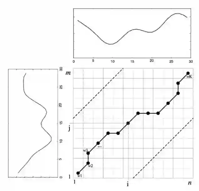 ),这些匹配关系的集合共同构成了图 3 中的黑色实线 warping path W: