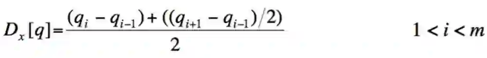 点处一阶导数的估计就是通过该点和该点左边点的直线斜率与通过该点左边点和该点右边点的直线斜率的平均数。Keogh, E. J., & Pazzani, M. J. 提到,在只考虑两个数据点的情况下,这种估计方法面对 outliers 更为稳定。