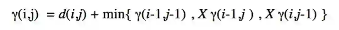 最终,两个不等长时序数据的对应关系可以通过动态规划来求解以下递归式得到: