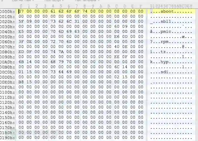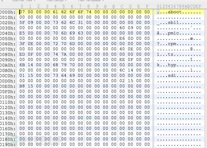 用010editor查看,看到了aboot的存在,但是bootloader.img应该是做了定制,不是普通的image文件。
