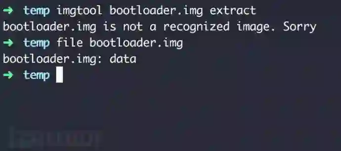 ABOOT文件存在于bootloader中,提取固件中的bootloader.img,使用imgtool提取却出错了: