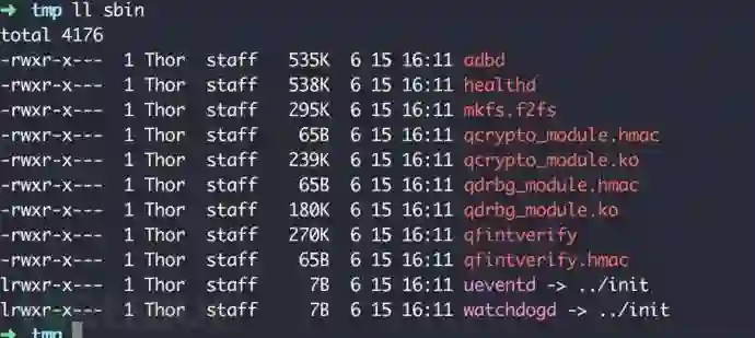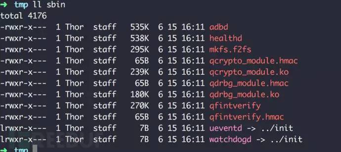 我们在sbin目录下看到了adbd二进制文件,它是我们我们执行adb shell时的服务程序。