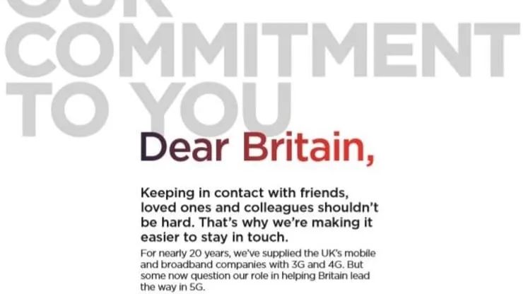 【华为在多家英国报纸买下整版广告,回击 5G 安全担忧】6 月 8 日消息,华为公司周一在多家英国报纸买下了整版广告,以回击英国对于华为在该国 5G 网络部署中所扮演角色的担忧。这一最新广告出现在了大多数英国全国性报纸上,包括《卫报》、《每日电讯报》、《泰晤士报》、《镜报》、《太阳报》、《每日邮报》等。华为也在一些地方性报纸上刊登了这则广告。