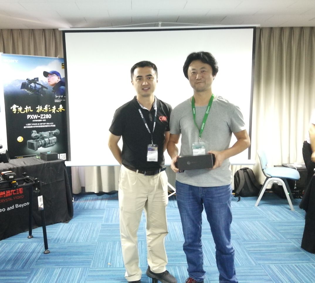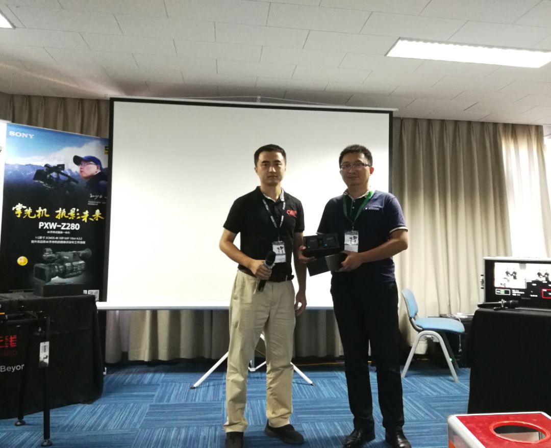 当天与会并上台进行技术分享的厂家代表分别是:视晶无线的董事副总经理袁立先生,索尼中国专业系统集团产品经理郑良红女士,LiveU副总裁Yaal Eshel 先生,目睹直播CEO鲁力先生。而且在分享结束之后,还进行了抽奖环节,奖品是视晶的幻影系列无线图传和运动直播图传Freestream。