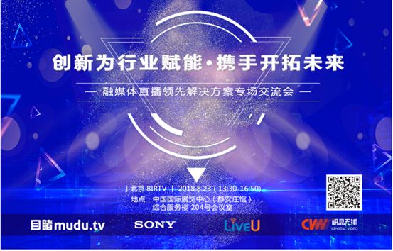 2018年8月23日,BIRTV 2018展会第二天下午,视晶无线联合目睹直播、索尼和LiveU,在中国国际展览中心(静安庄馆)的综合楼举办了一场针对融媒体直播领域的领先解决方案专场交流会。