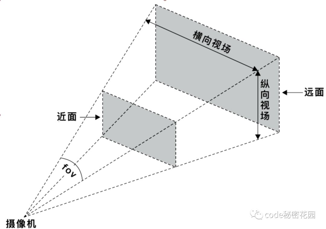 PerspectiveCamera接收四个参数, near、 far和上面的相同,分别对应相机可观测的最远和最近距离; fov代表水平范围可观测的角度, fov越大,水平范围能观测到的范围越广; aspect代表水平方向和竖直方向可观测距离的比值,所以 fov和 aspect就可以确定垂直范围内能观测到的范围。