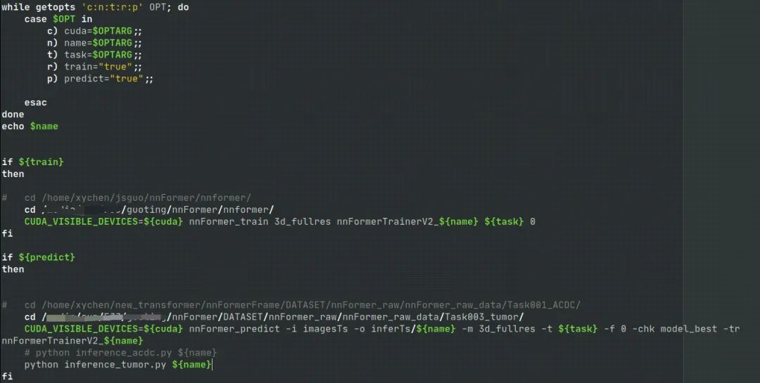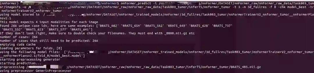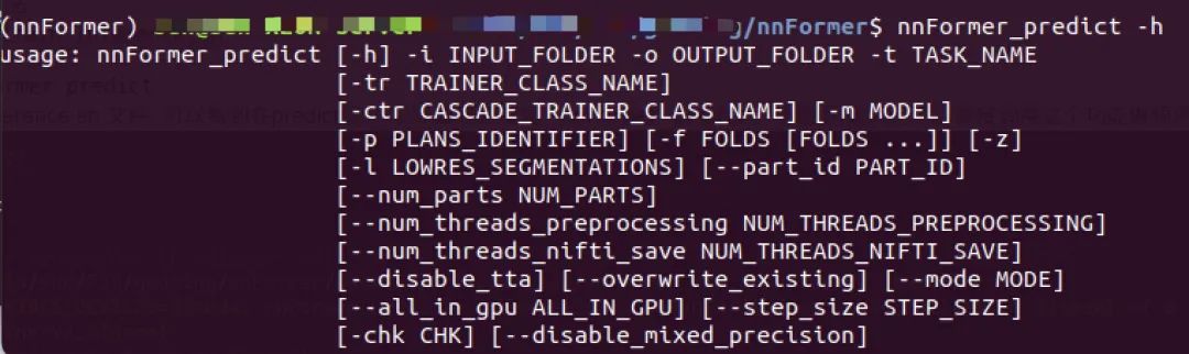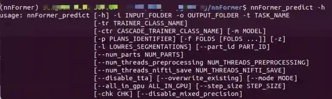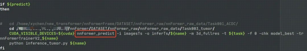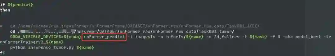 nnFormer_predict打开 train_inference.sh 文件, 可以看到在predict部分,实际调用的就是 nnFormer_predict功能, 因此我们可以直接调用这个功能做预测.