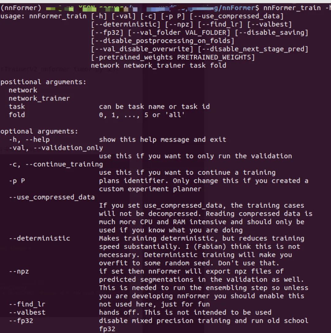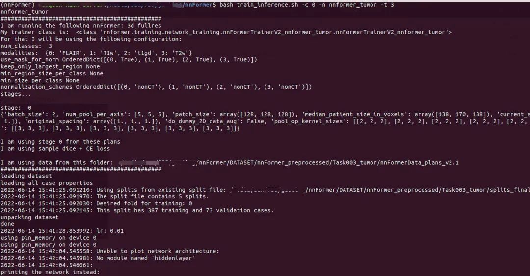 eg. CUDA_VISIBLE_DEVICES=1 nnFormer_train 3d_fullres nnFormerTrainerV2_nnformer_tumor 3 0