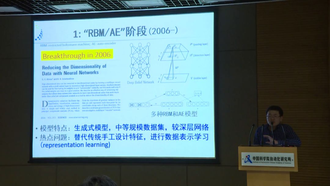 在2006年RBM的基础上,后续出现了各种RBM和AE变形。在第一个阶段,主要是生成式模型,而且所使用的数据库基本上是中等规模的,模型方面也只是采用了相对较深层次的网络。这一阶段的热点问题是替代传统的手工设计特征,直接利用数据来进行表示学习。