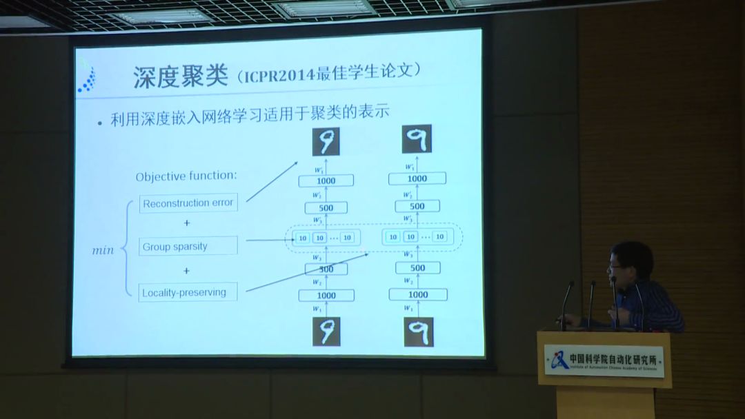 深度聚类,是ICPR2014最佳学生论文,这个工作也是基于Autoencoder做的。这个工作改变目标函数,在重构输入数据误差的基础上加入了新的规则项Group sparsity,这样能够进一步学习到类别相关的隐含表示。