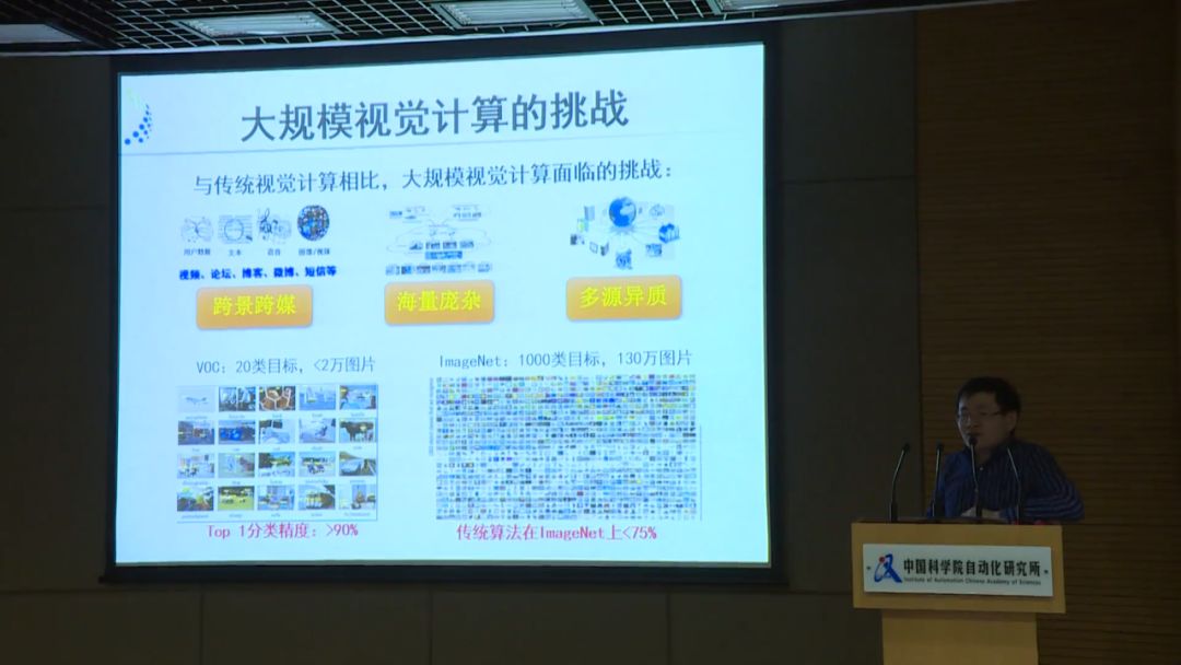 在视觉大数据时代,如何能够有效地利用视觉数据来做有意义的事情?这需要研究大规模视觉计算。大规模视觉计算带来了新的挑战,包括海量庞杂、跨景夸媒、多源异质等问题。这其中包含了一些关键性问题,在算法层面有大规模特征学习、大规模模型学习、大规模知识迁移等;在系统层面有大规模数据构建问题,以及大规模视觉数据处理平台等。在视觉大数据时代,只有解决好大规模视觉计算的关键问题,才能把视觉大数据转换为视觉红利,这是非常重要的时代背景。