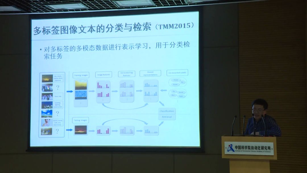 多标签图像文本的分类与检索,是TMM2015的工作。图像的标签(文本标注)和图像所表示的语义信息是相关的,是多模态的数据。多模态数据可以通过模态的重合来更好的表示,这些表示可以进一步用于信息检索。针对多模态数据的学习,要考虑两个方面,一是模态的缺失问题,有的图像缺少标注信息,即文本是缺失的;另外就是类别标签的共生关系,有些标签是整体出现的,利用标签之间的相关关系可以提高性能。