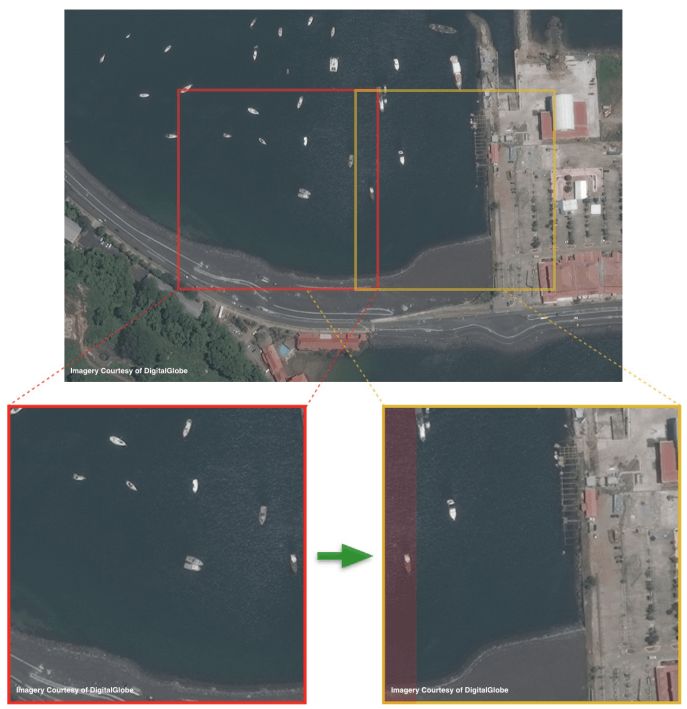 许多卫星成像的性能都依赖于其内部拍摄全局大图的能力。所以,小型图像芯片远不如由卫星平台自己拍摄的大型图像。物体检测的最后一步就是将成百上千张测试芯片连接到最后的图像层中。