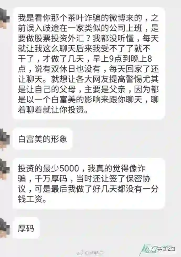 有一位网友提醒的很对,对这种卖茶叶诈骗,一般上微博的网友都有分辨能力,不会轻易受骗。但是上年纪的父母一辈人,一定要告诉他们提高警惕,因为这些云养的小姐姐主要诈骗目标就是他们。