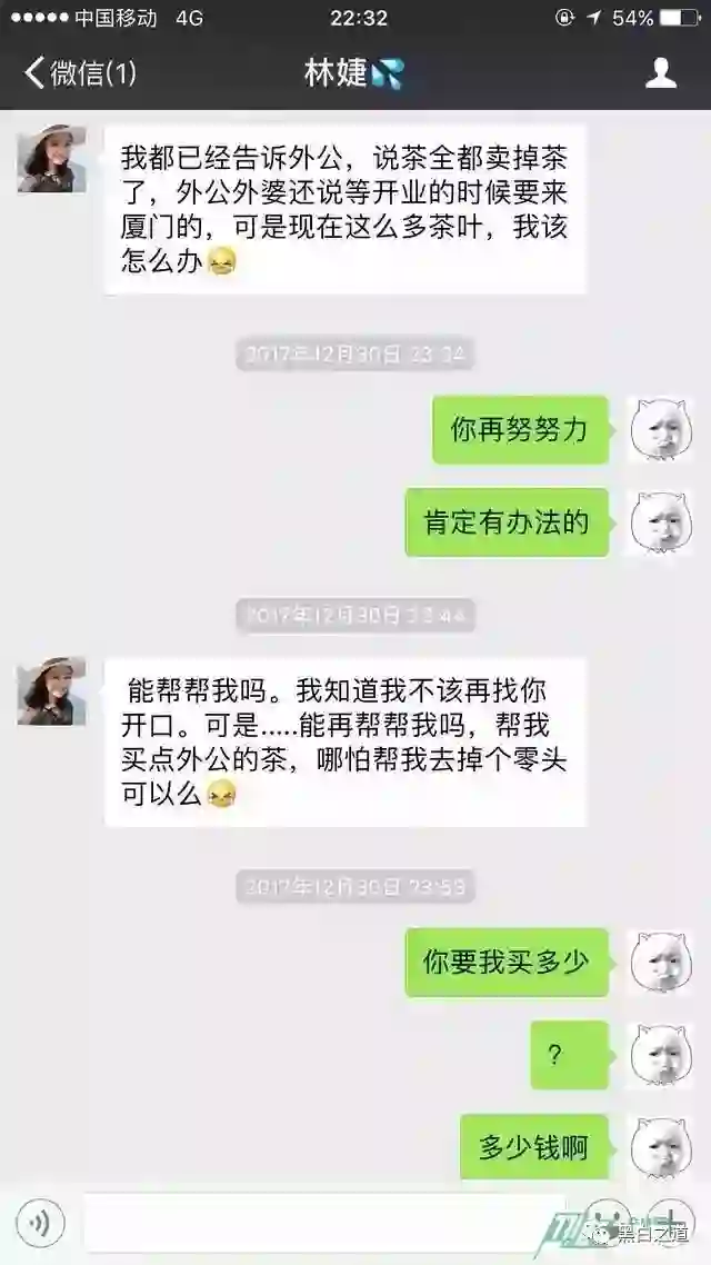 “外公那儿现在还有很多茶叶,我真的已经没有办法了,你能再帮帮我吗?”黄先生再次转了1600元。