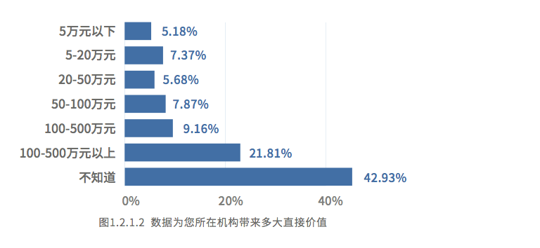 近80%受访者认为数据团队对自己所在的机构重要或者非常重要。数据团队的价值普遍受到认可。但是,超过40%受访者无法量化数据团队产生的直接价值。