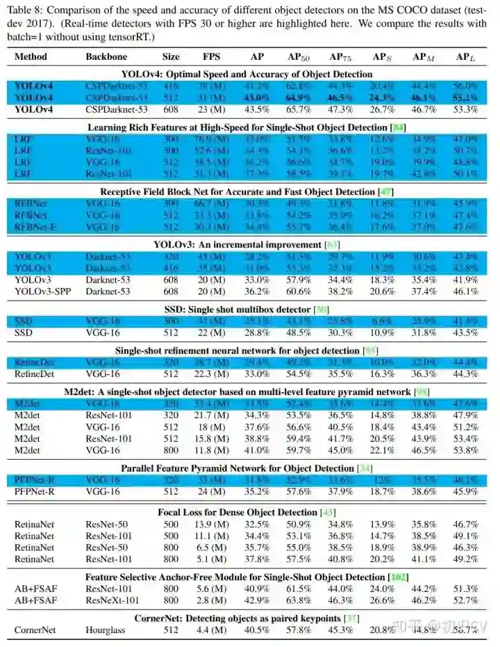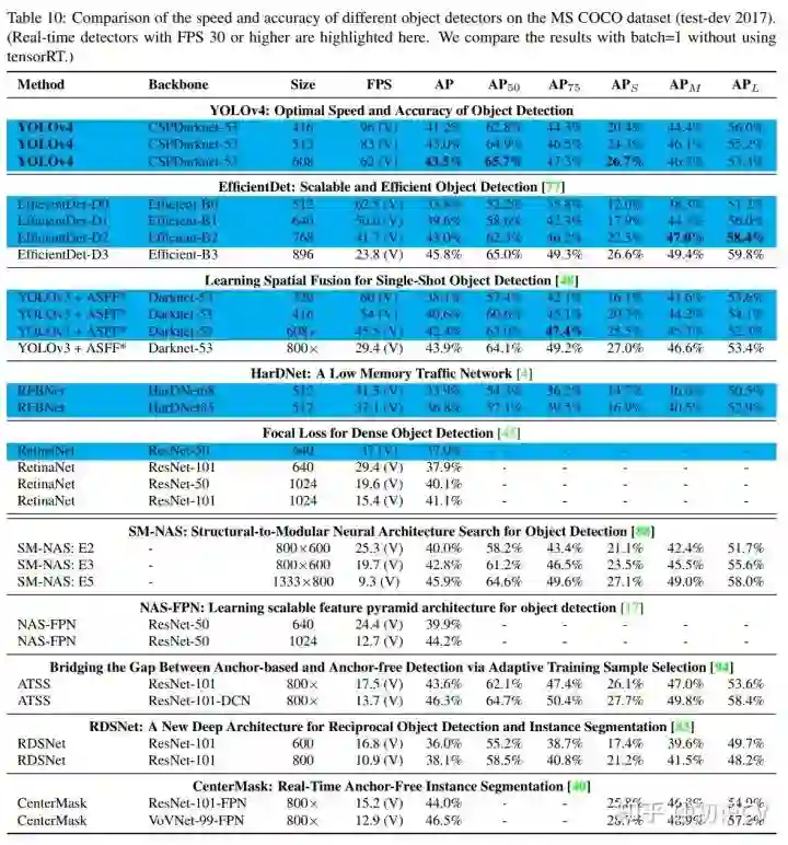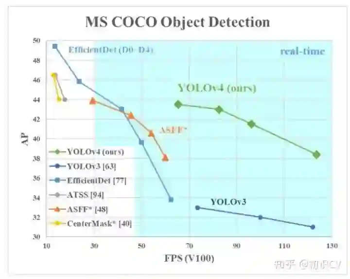 YOLOv4 在COCO上,可达43.5% AP,速度高达 65 FPS!