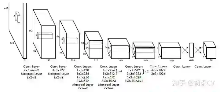 图像分类的训练样本很多,而标注了边框的用于训练对象检测的样本相比而言就比较少了,因为标注边框的人工成本比较高。所以对象检测模型通常都先用图像分类样本训练卷积层,提取图像特征。但这引出的另一个问题是,图像分类样本的分辨率不是很高。所以YOLO v1使用ImageNet的图像分类样本采用 224*224 作为输入,来训练CNN卷积层。然后在训练对象检测时,检测用的图像样本采用更高分辨率的 448*448 的图像作为输入。但这样切换对模型性能有一定影响。