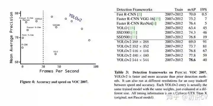 Figure4,Table 3:在voc2007上的速度与精度