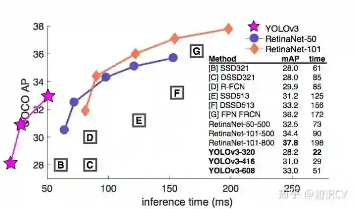 YOLO v3的模型比之前的模型复杂了不少,可以通过改变模型结构的大小来权衡速度与精度。