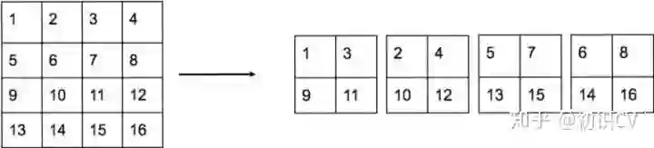 具体怎样1拆4,下面借用一副图看的很清楚。图中示例的是1个4*4拆成4个2*2。因为深度不变,所以没有画出来。