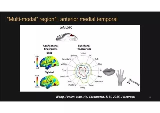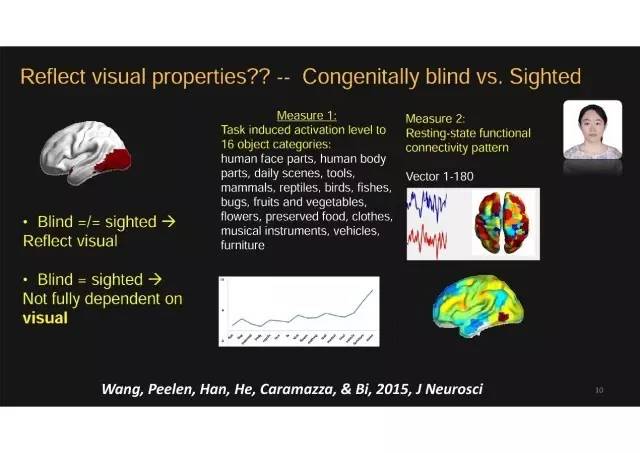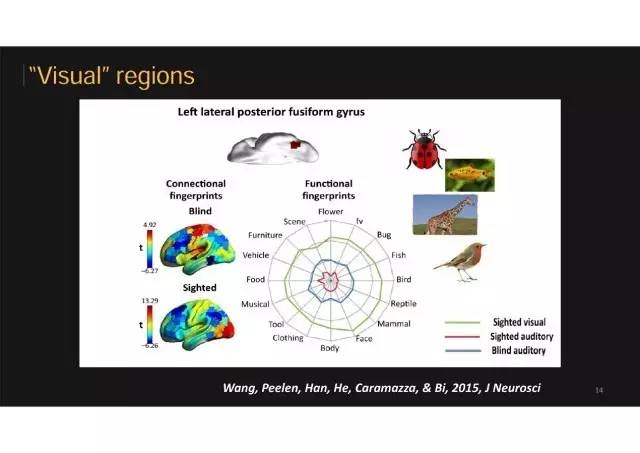 如果一个地方的特点完全是靠视觉驱动的,先天盲人和正常人应该表现不一样;