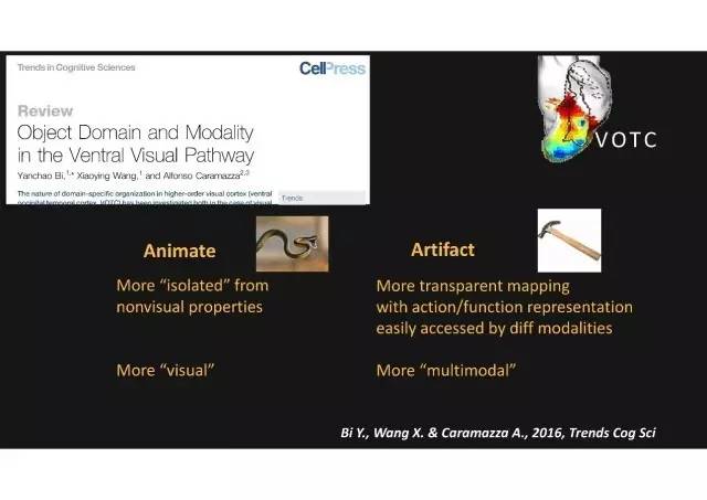我们最近两年有一个思路跟大家分享。人作为主体识别加工物体脑机制,与人的进化过程应该是非常相关的。不同类型的物体有很不同的进化意义。我们看到动物的图片和人造物的图片时候会有很多种不一样的推论和目的: